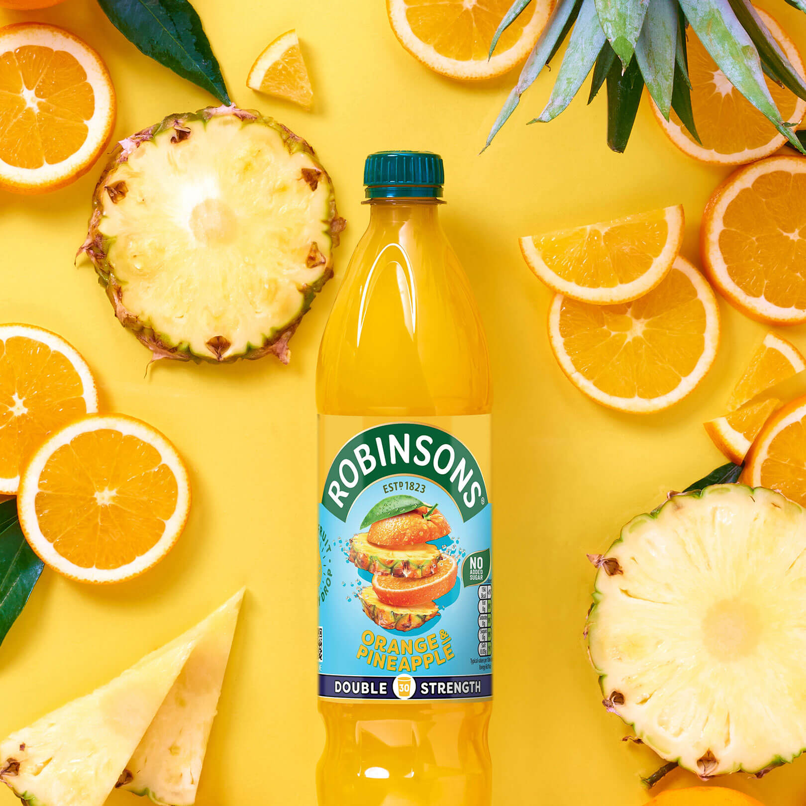 Everyone's favourite orange gets an exotic twist. Our great-tasting Orange & Pineapple squash has real fruit in every drop. And because it's double-strength, you'll find twice as many drinks* in every recyclable bottle. Also available in 1L = 40 serves, 1.75L = 70 serves. *Double Concentrate contains twice the servings of Single Concentrate.