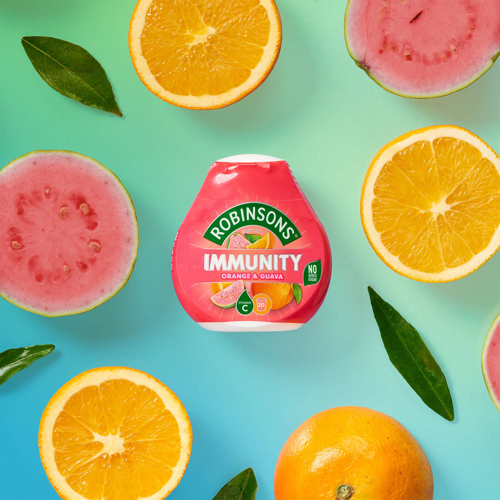 Have a little immunity boost. This super-fruity squash is a combination of zesty orange and exotic guava, with added vitamin C*. Delicious and health-conscious, it's the perfect addition to your water bottle – and just 3 calories a glass.