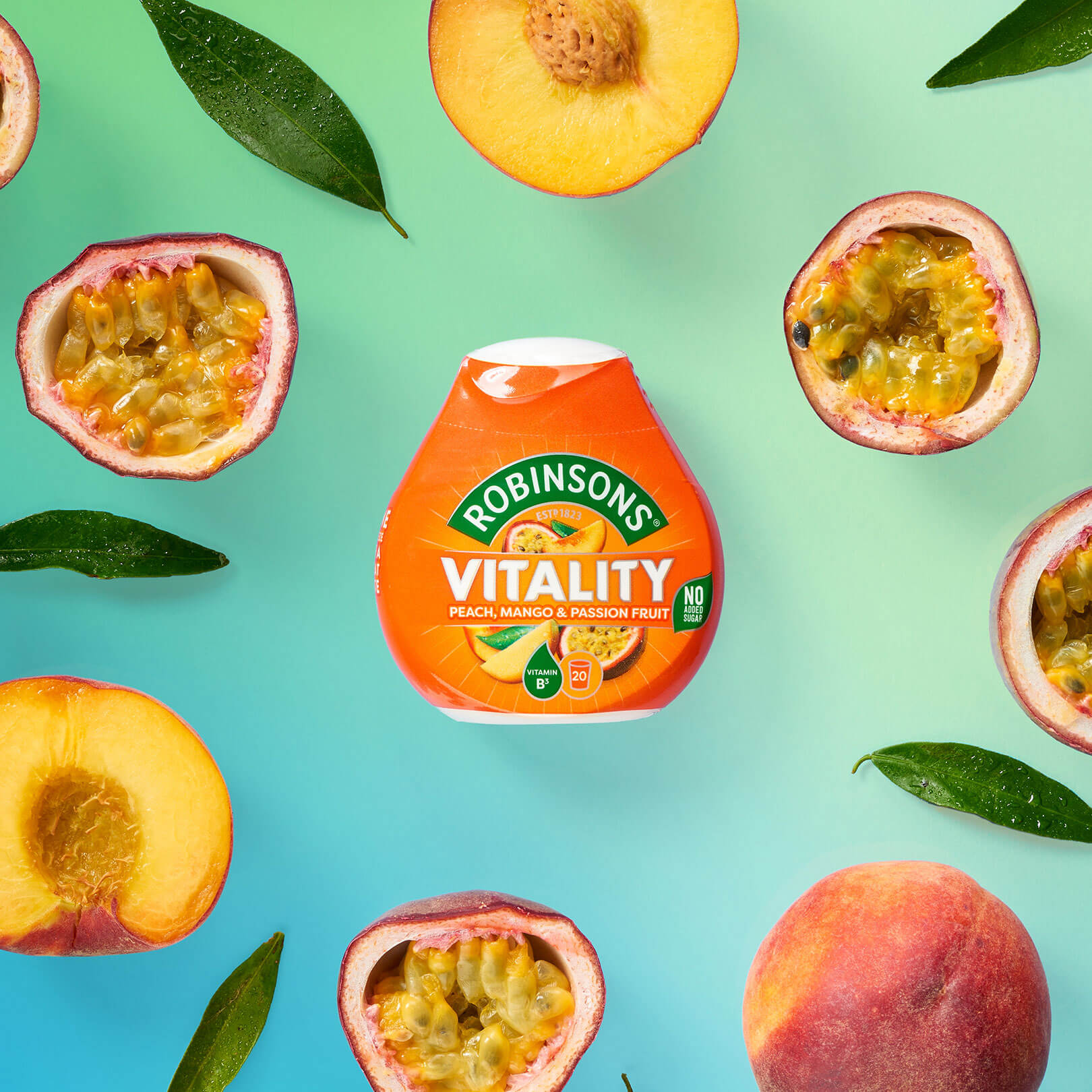 Enjoy a little extra vitality. This super-fruity squash is an exotic combination of peach, mango and passion fruit, with added vitamin B3*. Delicious and health-conscious, it's the perfect addition to your water bottle – and just 3 calories a glass.